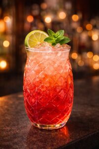 Ein fruchtiger, alkoholfreier Cocktail aus Orange, Cranberry und Pfirsichnote. Süß, erfrischend und farbenfroh – ein echter Klassiker mit sommerlichem Charakter, ganz ohne Alkohol.