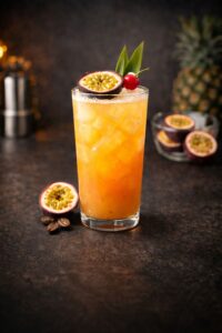 Cremiger Kokosrum trifft auf fruchtige Maracuja. Süß, exotisch und wunderbar erfrischend – Urlaubsfeeling im Glas.